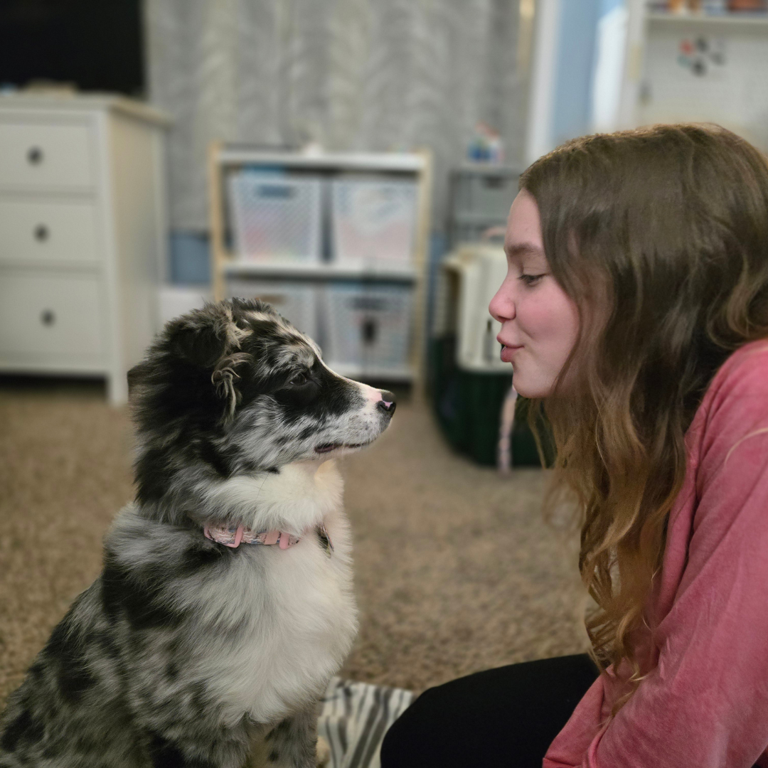 At home, Pippa has formed a special bond with her human sister, who has taken on her role with so much love! The two are inseparable, with Pippa happily following her around like a devoted shadow.
