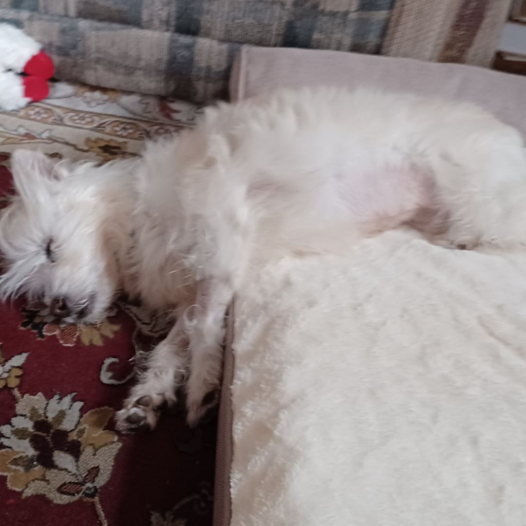 Mopsie was suffering from a severe case of hookworms that required four rounds of treatment to fully clear. She also had a mass on her stomach that needed testing and surgical removal, thankfully, it was benign. On top of that, she required a much-needed dental procedure to restore her comfort and overall health.