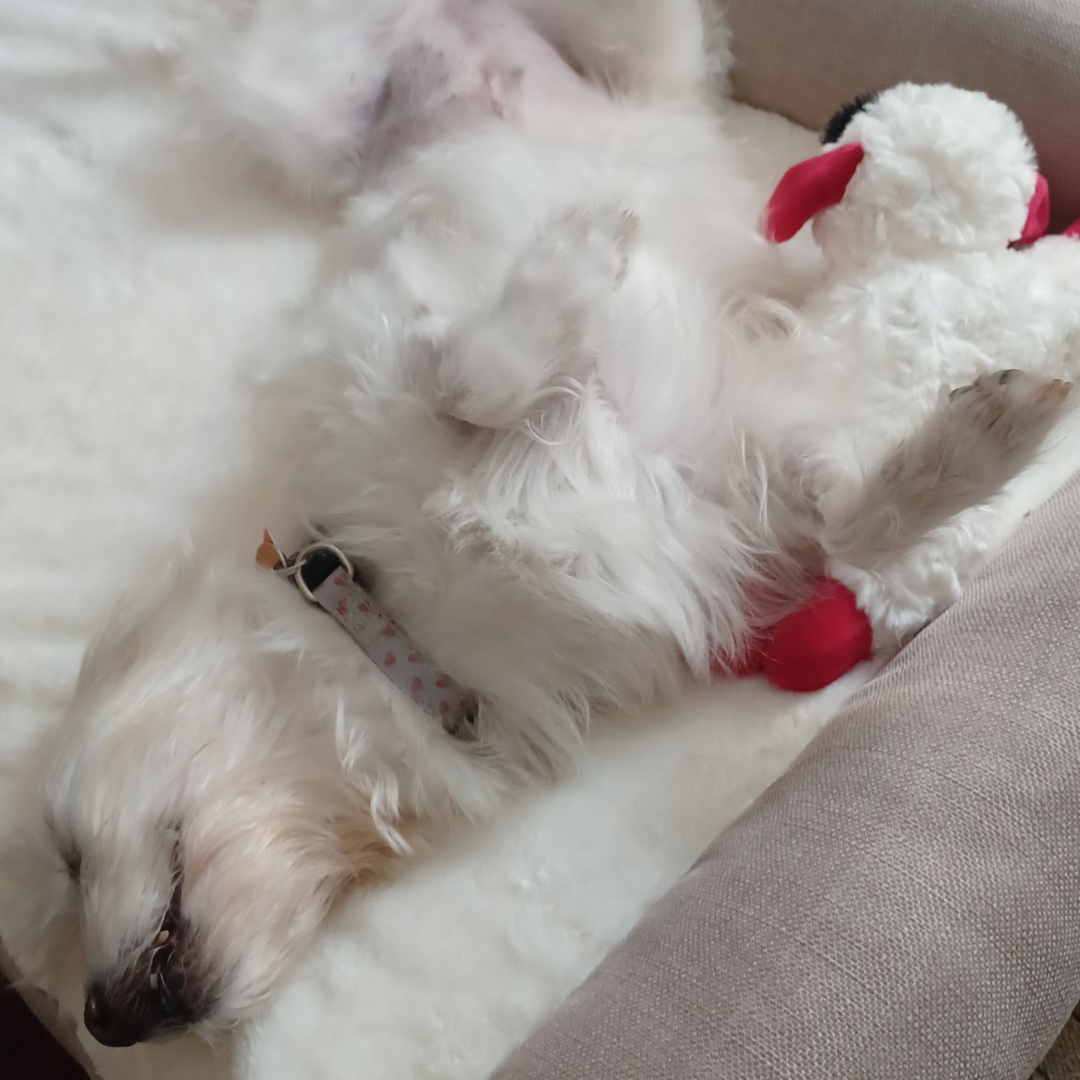 Now known as Hope, she has settled in beautifully into her new life. She quickly bonded with her new mom, and the two have become inseparable. Hope’s favorite spot in the house is her cozy bed, where she loves to stretch out and enjoy long, peaceful naps.