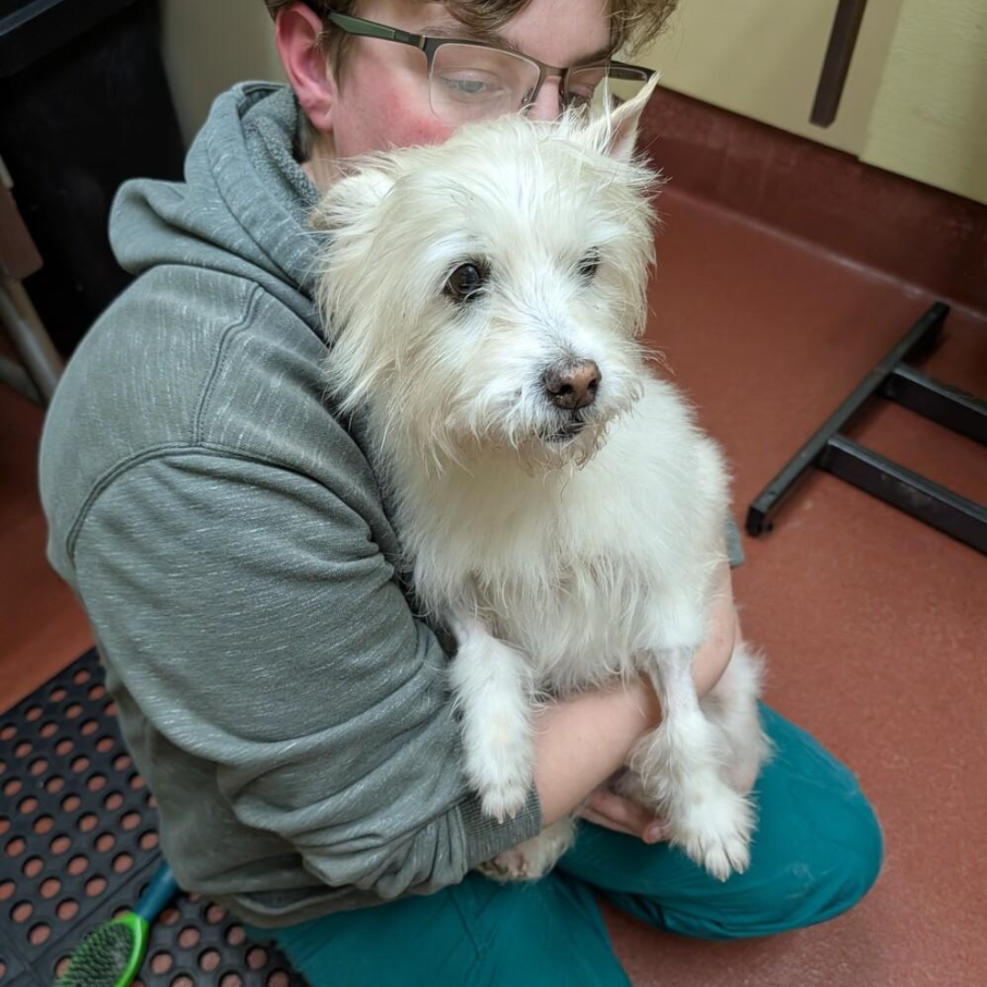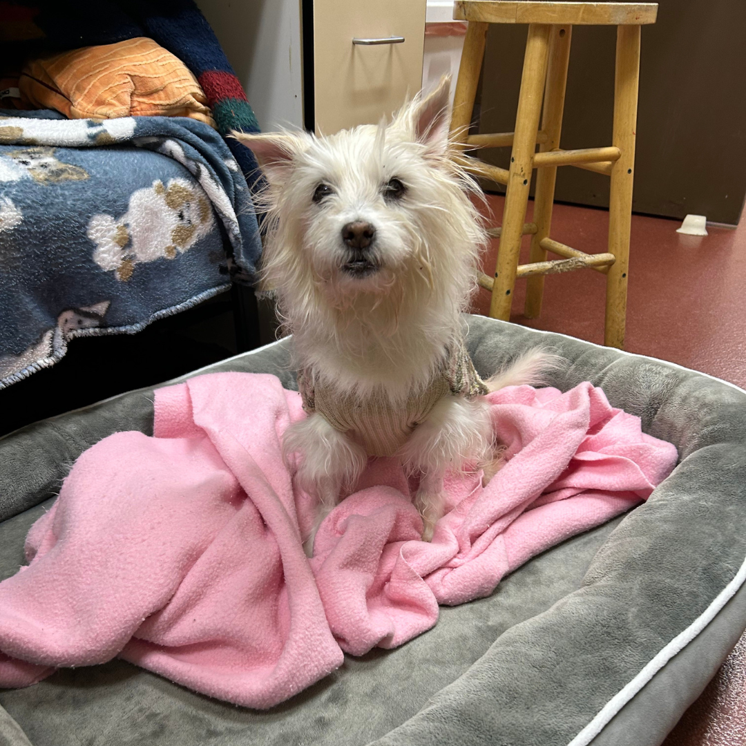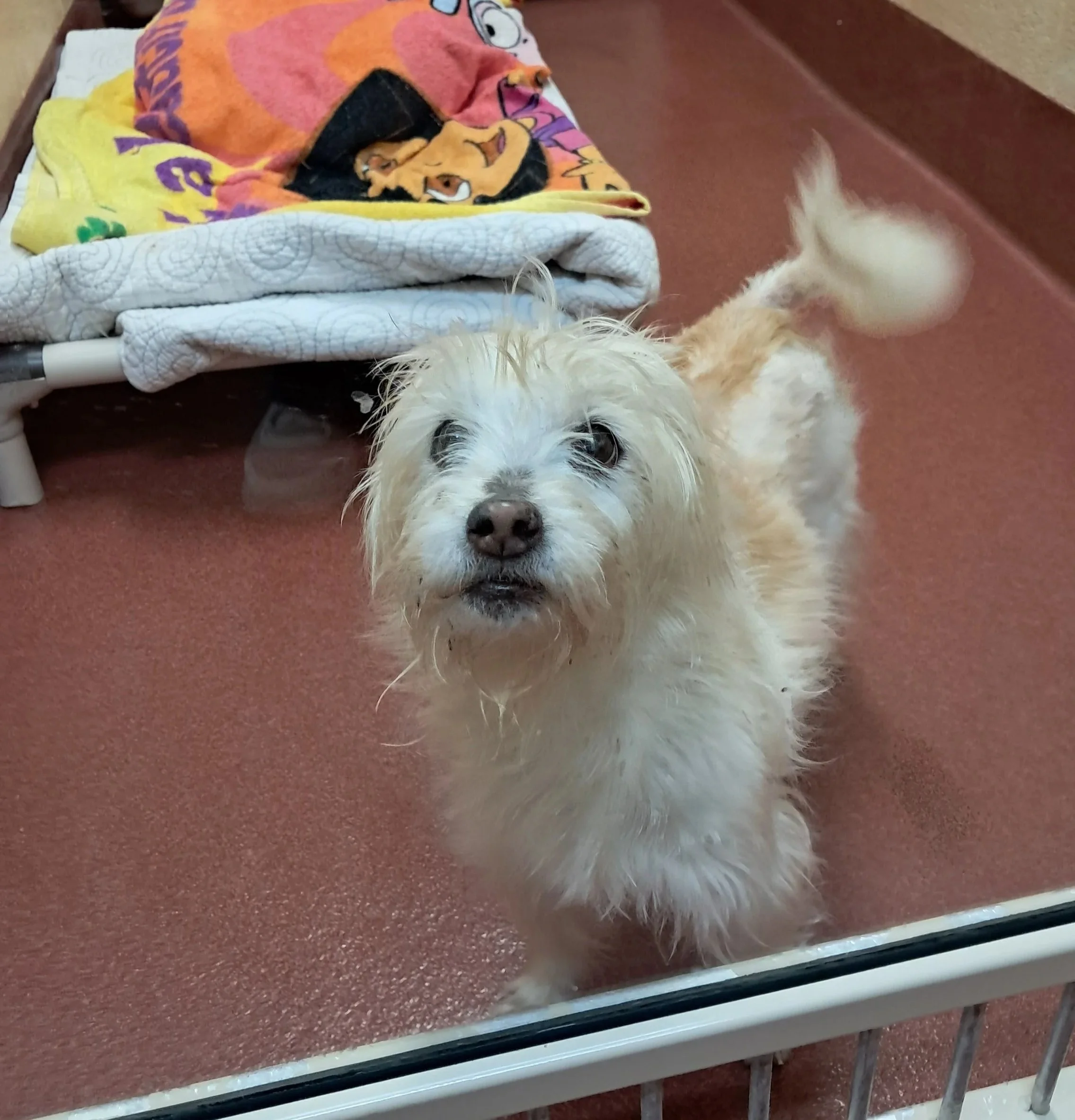 Mopsie is a 13-year-old Terrier mix with a heart as big as her story. This resilient little lady came to HART after being found wandering alone in the middle of a snowstorm, cold, vulnerable, and desperately in need of help.